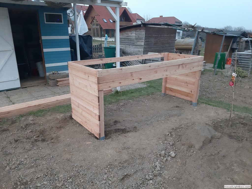 Der Plan wird erstellt und das Material wird gekauft. 2,50m x 1,00m und 1,00m hoch soll es werden. (03.-06.2021)