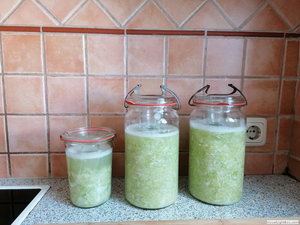Gut 6 kg Weißkohl haben wir in 2022 zu Sauerkraut verarbeitet. Durch Fermentation ist es ohne zusätzliche Kosten lange haltbar.
